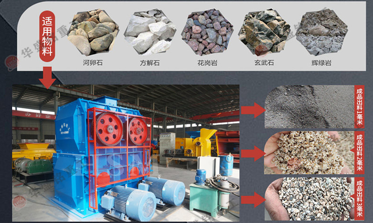 煤、煤矸石、爐渣、頁巖、石灰石、鵝卵石、河卵石、青石、菱鐵礦、玄武巖、花崗巖、鋼渣、水泥熟料、建筑垃圾等物料